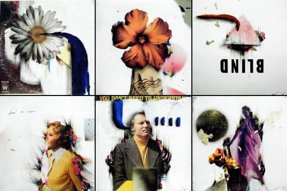 Dublab is a non-profit radio station based of Los Angeles that works collectively with artists to help get their work known. Consisting of mostly the underground electronic/dub-step/experimental scene, artists like Daedelus, Flying Lotus, Animal Collective, Four Tet & Cut Chemist have all had sessions in the lab. Teebs (http://www.myspace.com/teeeb) is another musical artist and painter who is affiliated with the radio station, and has just recently finished his record sleeve series for Dublab. Now...I've known Teebs for quite some time now. In fact he was the first person to ever teach me how to ollie on a skateboard, hahaha. I've always known he was a good artist, but never really knew how good until I saw these sleeves. I believe now I fully grasp how good he is. What I love about Teebs is his uncanny ability to......Ah, yes. That's what I love: How I have no words to describe his art. Now I realize that art is all about interpretation and hidden meanings, messages etc etc. However Teebs' art seems to really bring itself out and shine most when one doesnt not anaylyze the painting, but simply admires it. Here's to you, Mtendere!